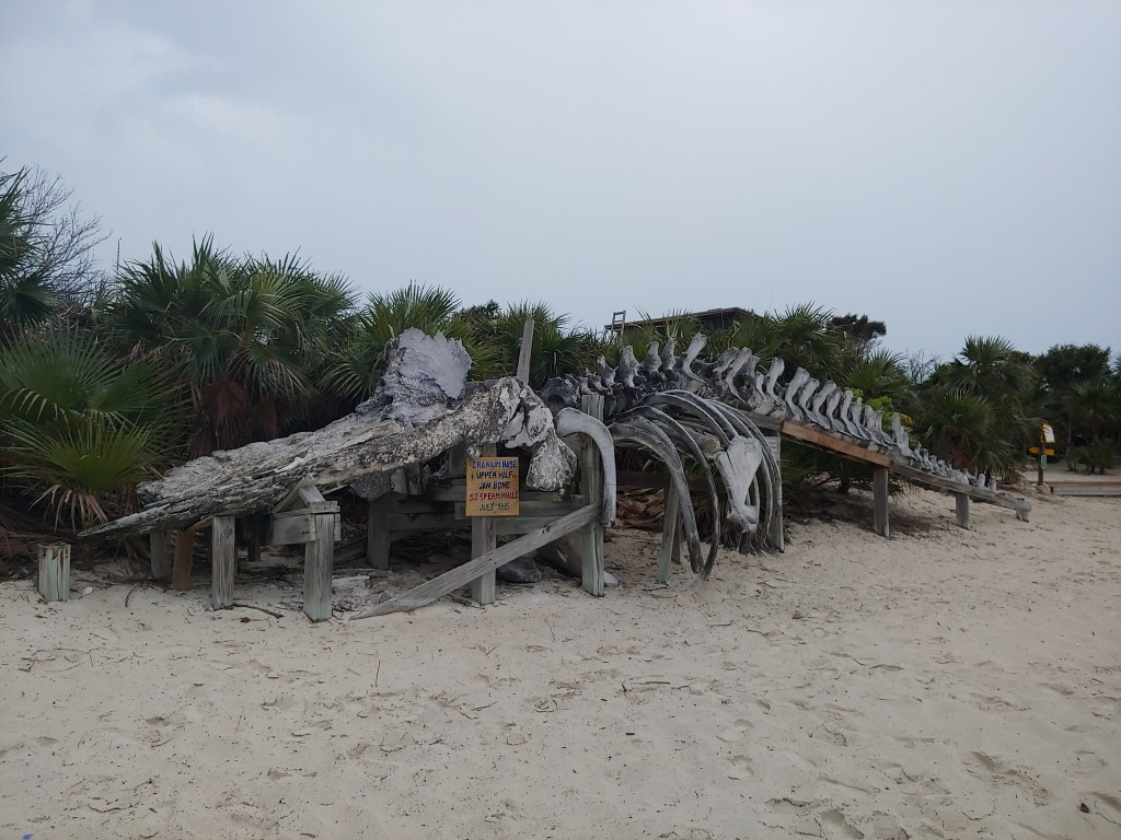 We arrived at Exuma Land and Sea Park on Wednesday, May 1st. The park encompasses a number of islands with the park headquarters located on Warderick Wells. We anchored near the Emerald Rock mooring field and after settling in dinghied to the office. We paid our anchoring fee ($23 per day for our sized boat) and checked out the gift shop. Our cruising guide said you could buy internet however that didn’t turn out to be the case. But the nice lady at the office told us if we turned right from the gift shop and went down to the third step we should be able to get a couple of bars. It worked! We were able to at least get a message out to the family that we were alive and well. We took a short walk on the beach and found the whale skeleton they have on display before returning to the boat.