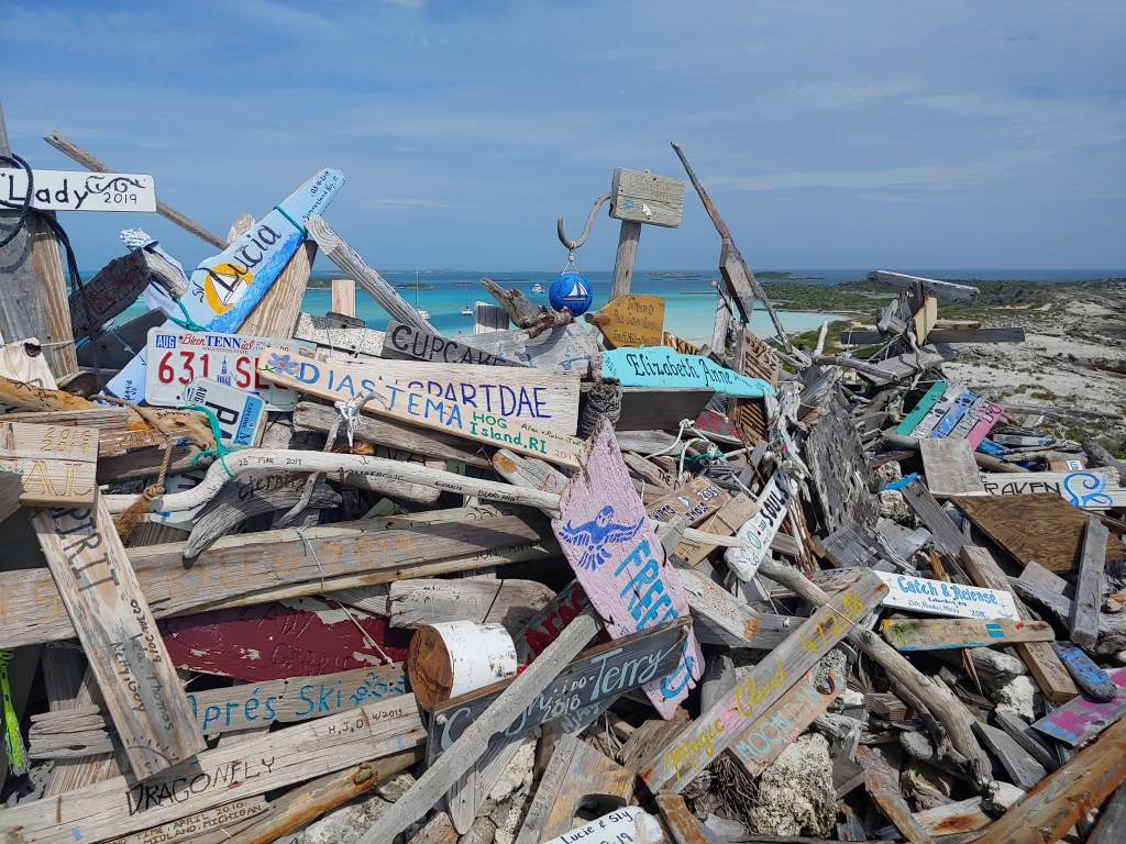 The next morning we decided to hike up to Boo-Boo Hill. This place is famous with cruisers who leave offerings for Neptune and ask for his blessing. These offerings are normally something on wood identifying their boat.