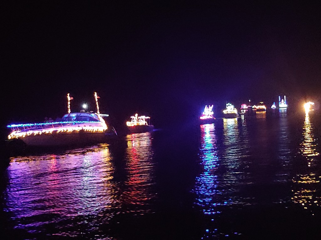 We’ve had numerous questions from friends and family about what we do at night.  The short answer is, we keep going.  We have an autopilot so there isn’t a need to hand steer but there has to be someone awake and paying attention at all times.   To make this happen, we take 3-hour watches from 6 pm to 6 am.  Beginning at around 4 pm, I’ll usually take the helm so Russell can try to nap before his watch then I try to rest from when he takes over at 6 until my turn again at 9.  Does this mean we each get 3 full hours of sleep at a time?  Absolutely not!  I’m normally up anytime he makes a sail change. We generally like to reef the sail before nightfall.  Basically, that means making the sail smaller, so we won’t be overpowered if the wind gets high.  To reef the main sail, Russell must go up on deck to the mast and lower the sail some so he can attach it at the reef point and pull in the reef lines.   On some boats this can all be done from the cockpit but not on our boat.  Since he has to leave the cockpit, that means I will be sitting at the helm in case of an emergency – see last years post about him going overboard! Reefing usually takes place during his watch so I lose a bit of sleep.  There’s also plenty of times that I have to wake him up.  If there’s a major wind change, if we seem to be sailing headlong into a squall line or generally any situation that I’m uncomfortable with.  But, having clearly defined watches seems to help us get enough sleep so that we’re fully functional and mostly comfortable while continuously having someone at the helm.  We also swap off during the day, but it’s as needed instead of on a schedule.