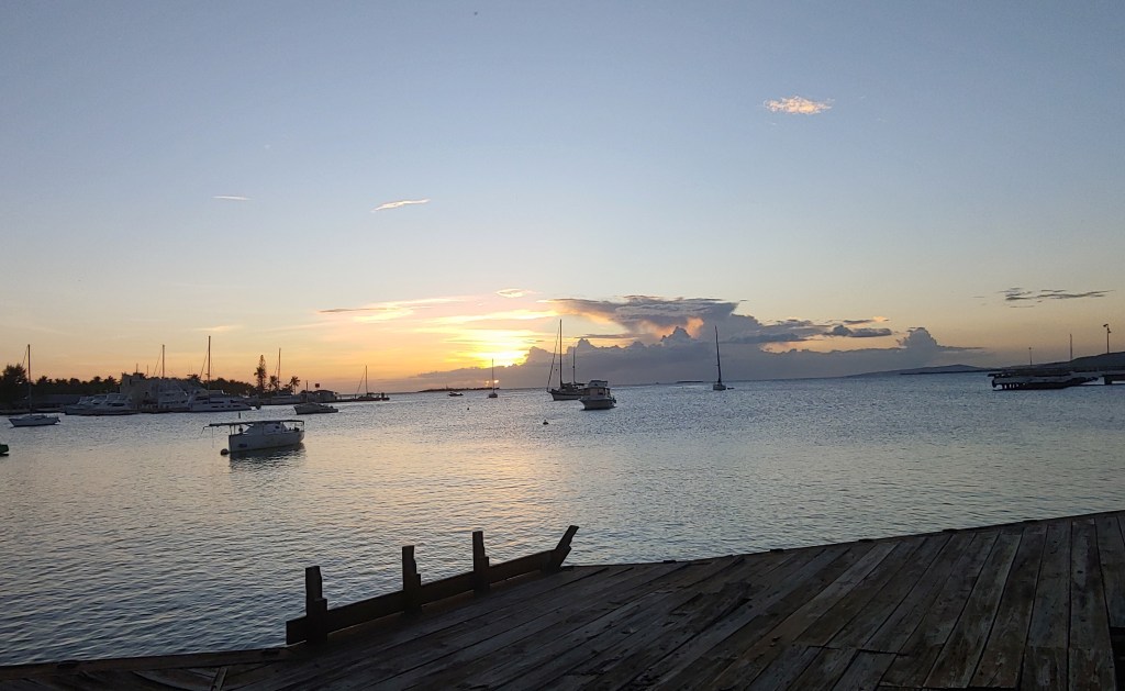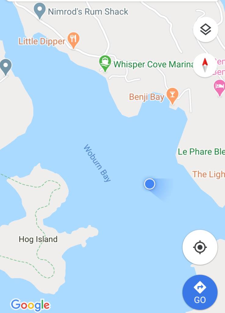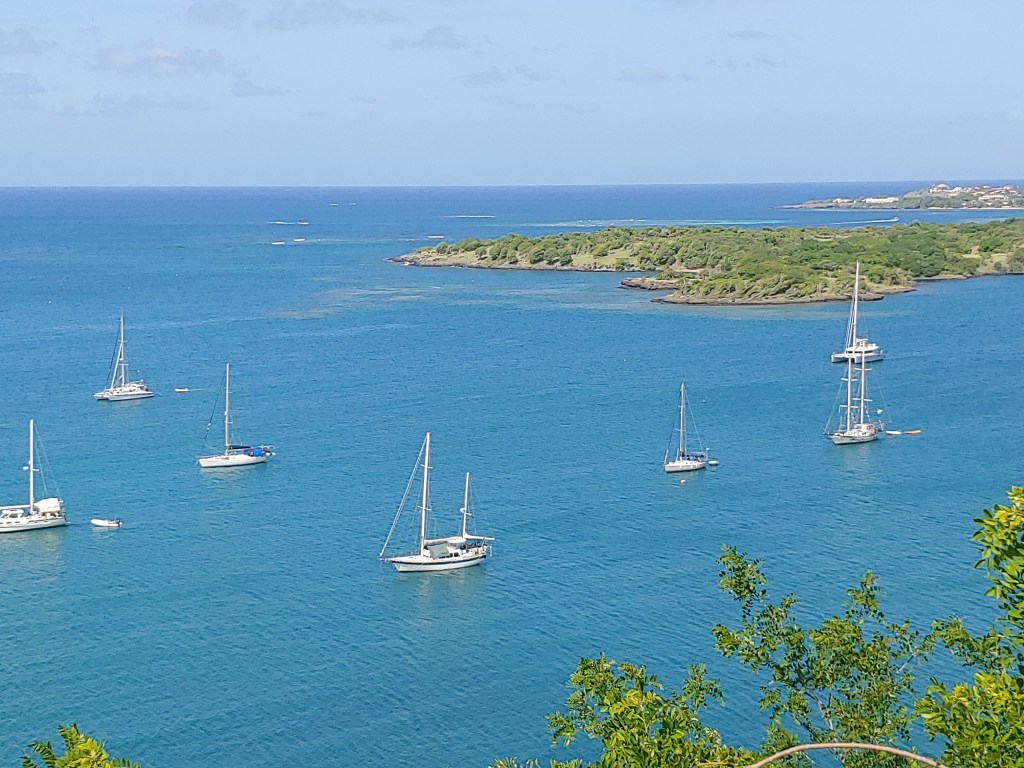 Woburn Bay offers a lot of options for getting off the boat for shopping, eating & entertainment and exercise.  Le Phar Bleu has a dinghy dock, resort, restaurant, marina and pool which many cruisers use and enjoy.  There’s also the Lightship which is a barge with a bar that also periodically offers a movie night for the kids.