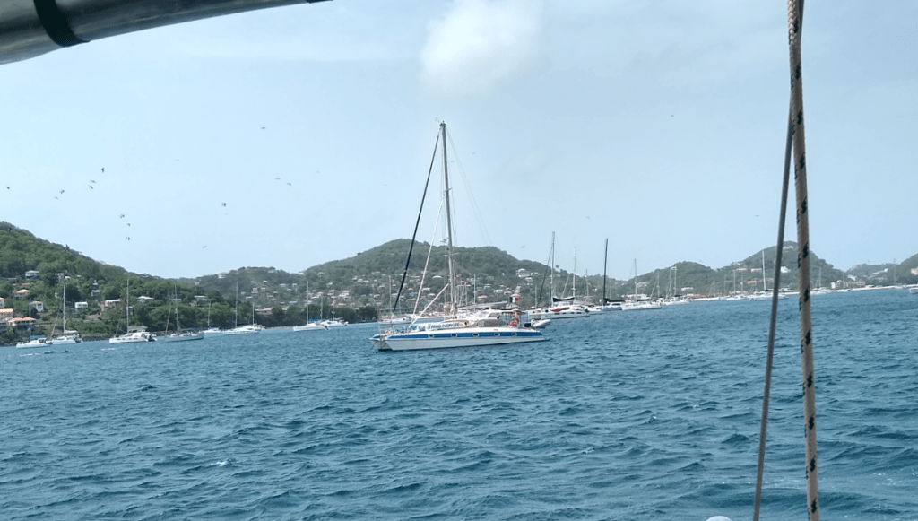 Our anchor and chain also had a lot of growth from being out so long so Russell had to clean it as he was bringing it on board but finally, at 8:45 am on June 28th, we waved goodbye to our boat neighbors as we motored out of the anchorage and we were Grenada bound.
