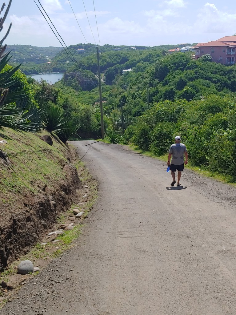 As time passed and we became more comfortable moving around, we began to dinghy to shore for some exercise in the evenings and once they removed the restriction on swimming, we either walked or swam most every day.