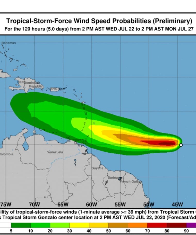 Gonzalo kept veering south so thankfully ended up being a non-event for us.  This has been an active season with numerous waves passing over us, some bringing fairly strong winds.  Fortunately, while a few other boats in the surrounding anchorages have dragged, Ddraig continues to hold firm.