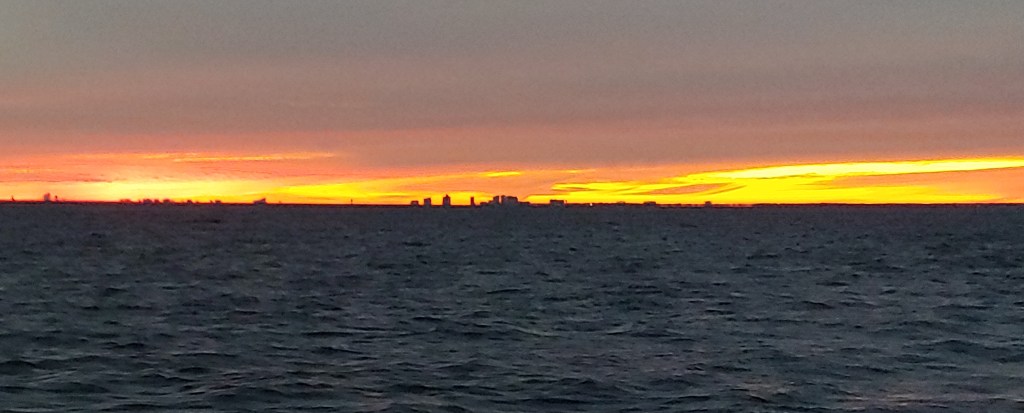 On my 3 to 6 am watch Friday morning I was seasick again because I stupidly forgot to take another Bonine (will try not to let that happen again!) but thankfully the seas settled down and I was able to recover.  Unfortunately that was because the wind died. So after a few hours of poking along at 3 knots, we started up Old Blue and motor sailed what turned out to be the rest of the way into Ft Myers.